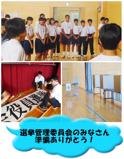 選挙管理委員会の皆さんが立会演説会の準備を進めています。
