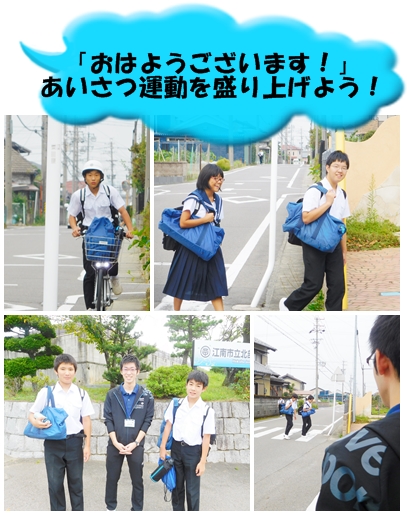今朝は、水野先生も正門前でのあいさつ運動に参加してくれました。