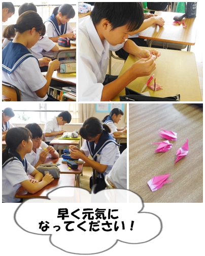 すぐ分かりました。徳田先生にあげる千羽鶴をつくっているのですね。