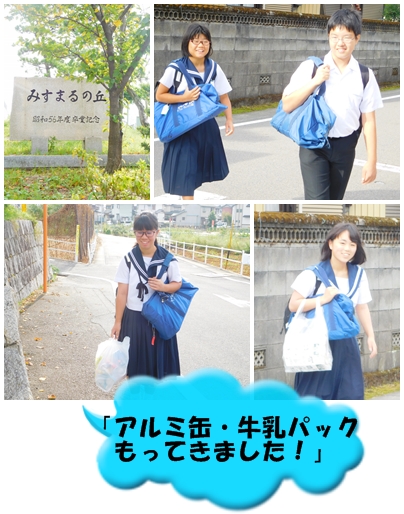アルミ缶・牛乳パック回収へのご協力に感謝します。【生徒会】