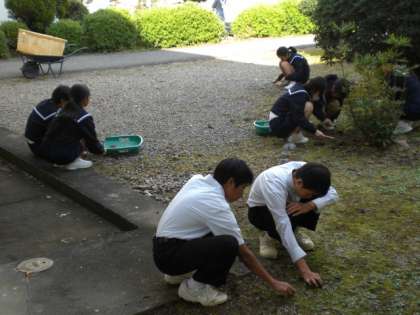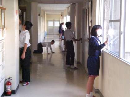 黙って掃除をする。北部中学校の伝統です。