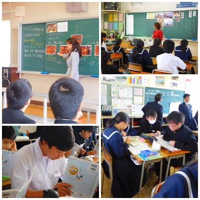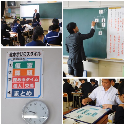 今日は教育委員会からお客様がみえて、北部中学校の生徒が一生懸命に授業を受けている様子を見ていただきました。