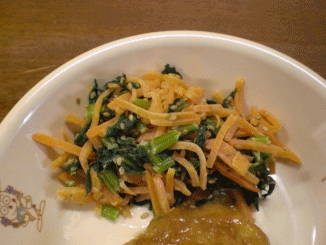 本日の献立の主役は「ごはん」「揚げブリのすずしろあん」「青菜とにんじんのごまあえ」「牛乳」「スズナの汁」です。
