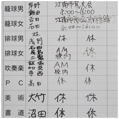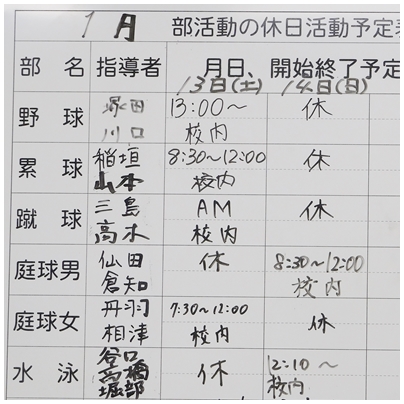 土日の部活動の予定についてお知らせします。