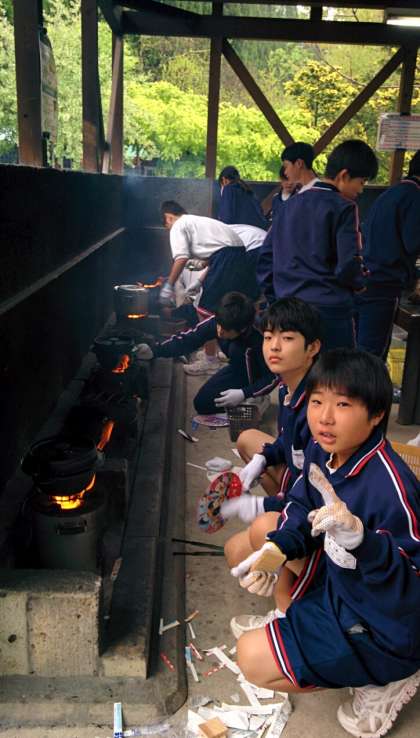2組 郡上鍋調理中