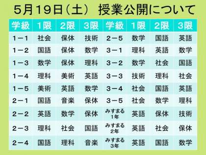 5月19日(土)は午前中、公開授業を予定しています。
