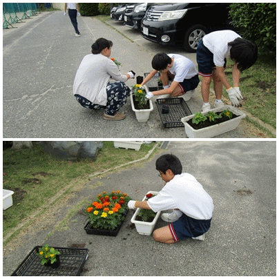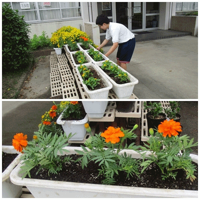 テストが終わり、みすまる学級のみなさんが花の植え替えをしてくれました。