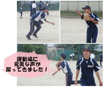 蒸し暑い日ですが、みんな、久しぶりの部活動でとてもいい汗を流しています。