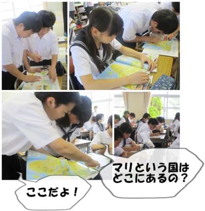 地図帳を使って、マリという国を調べています。