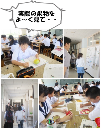 実際の果物を見て描いたり、写真を見ながら描いたりしています。