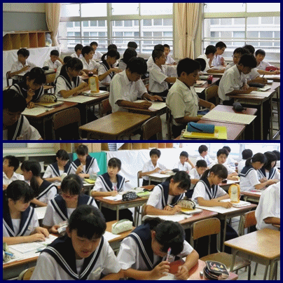 早朝から多くの生徒が集まり、期末テストに向けて学習会をしていました。