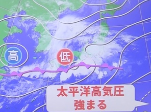 沖縄では、昨日土曜日に梅雨が明けました。この後、太平洋高気圧の勢力が強くなり、次第に少しずつ暑さが広がっていきます。また。これに合わせて、梅雨前線も上がってきますので、前線上では南からの暖かい空気が流れ込み、激しく雨が降るでしょう。大雨にも注意する時期も近づいてきました。