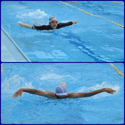 2年生は背泳ぎ、3年生はバラフライの練習です。