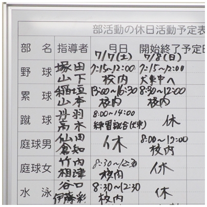 土日の部活動の予定です。