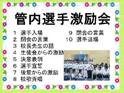 本日12日(木)6限 管内選手激励会 どうぞ保護者の皆さんもご覧ください。