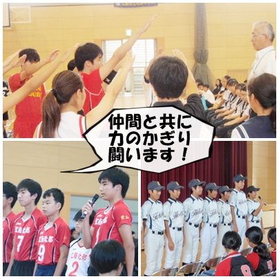 選手のこれまでの練習を讃えると共に、全校生徒で激励することによって、選手の意欲を高め、練習の成果を十分に発揮できる環境をつくります。
