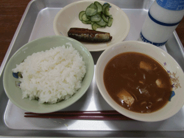 本日の献立は、「ごはん」「鰯の梅煮」「きゅうりのさっぱりあえ」「牛乳」「あわせみそ汁」です。
