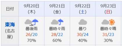 (Yahoo Japan 天気・災害「週間天気予報」から)