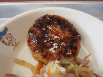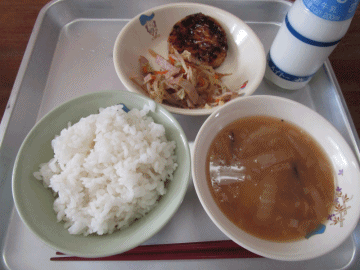 本日の献立は、「ごはん」「豆腐ステーキ」「野菜炒め」「牛乳」「すいとん汁」です。