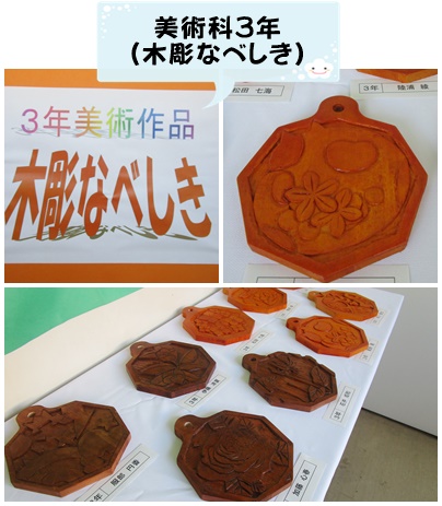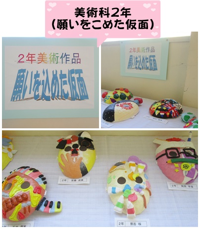 南舎2階には、美術科の作品が並べられています。
