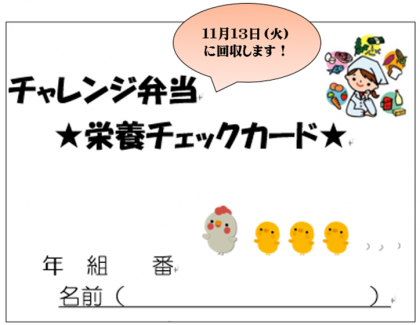 栄養チェックカードは、11月13日(火)に回収します。