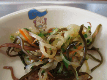 本日の献立は「ごはん」「ジンギスカン」「石狩鍋」「牛乳」「大根の松前漬け和え」です。