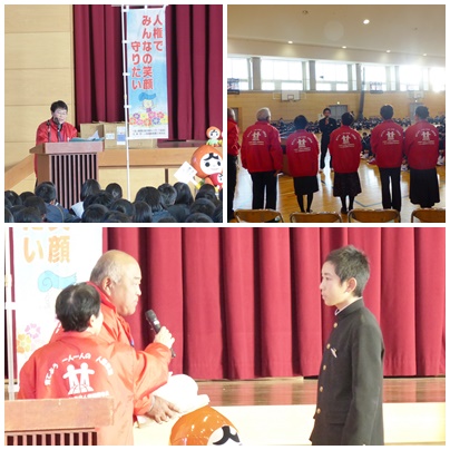 本日6限に体育館で江南市人権擁護委員の方による人権教室を行いました。