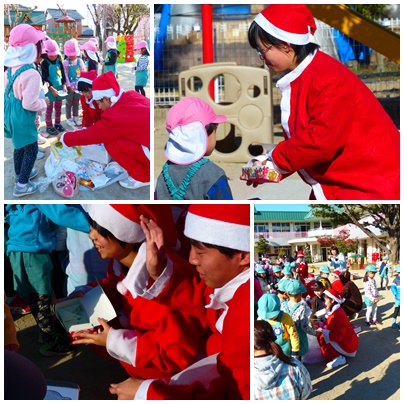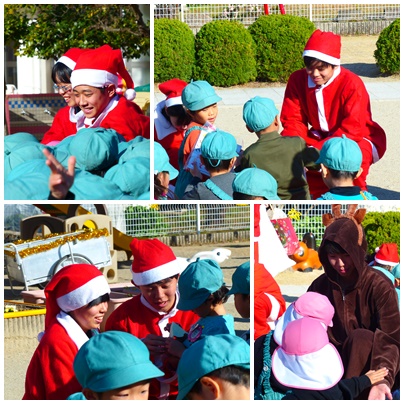 でも、たくさんのサンタさんの登場に子どもたちは圧倒されていました。