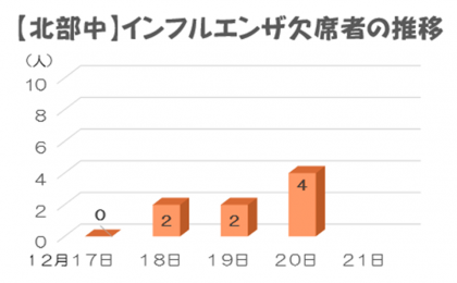 今日の北部中学校では、腹痛や発熱の症状のある生徒が増えました。