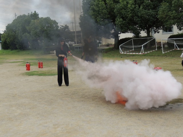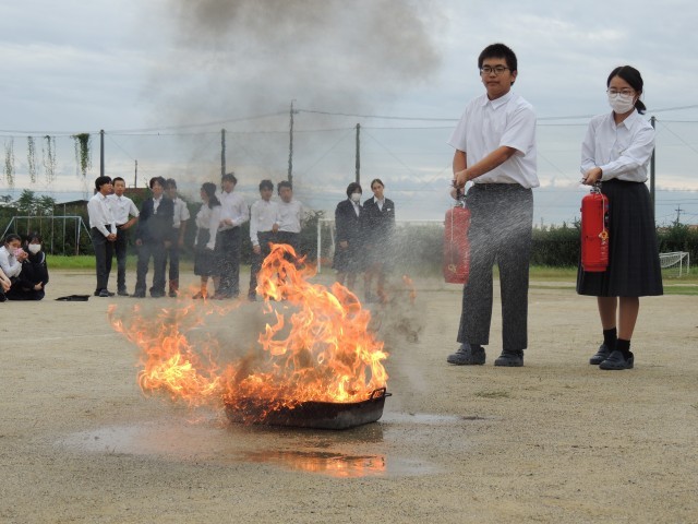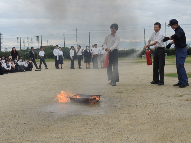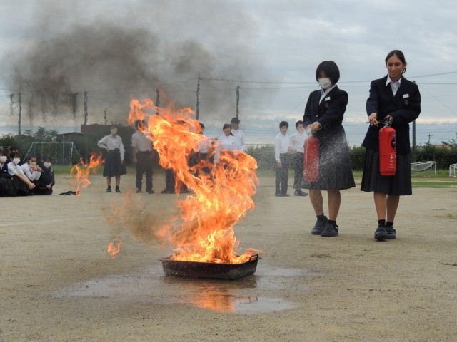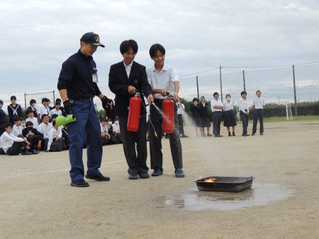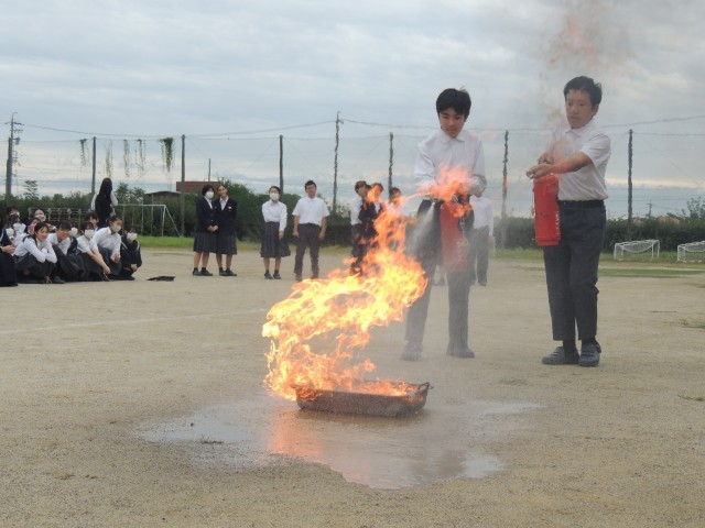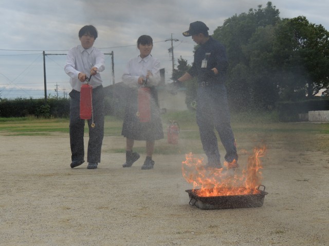 2年生は消火器訓練をしました。各クラスから代表者を募って実施しました。