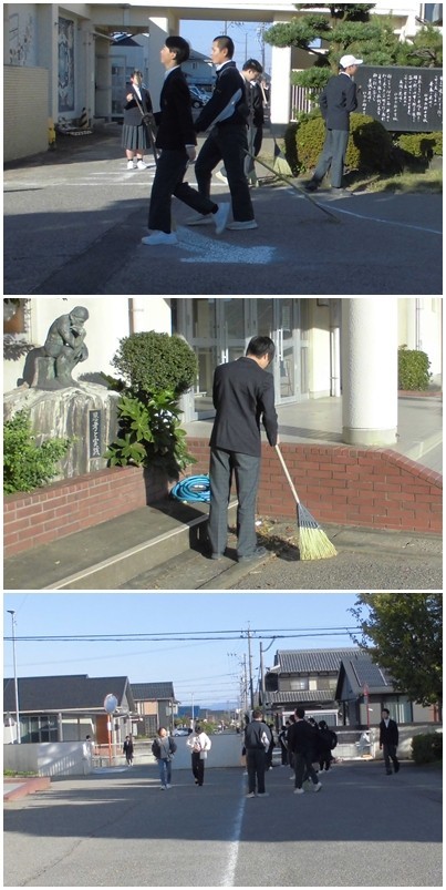 広報委員の皆さんは「赤い羽根共同募金」の活動、環境委員の皆さんは「落ち葉はき」の活動、保健委員の皆さんは「地域の皆さんとラジオ体操」の活動をしています。