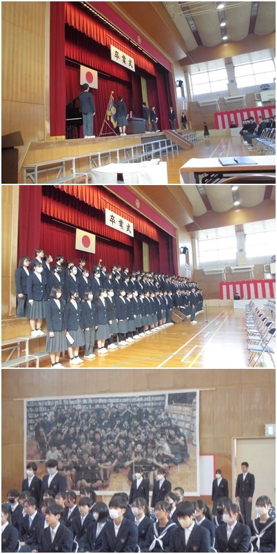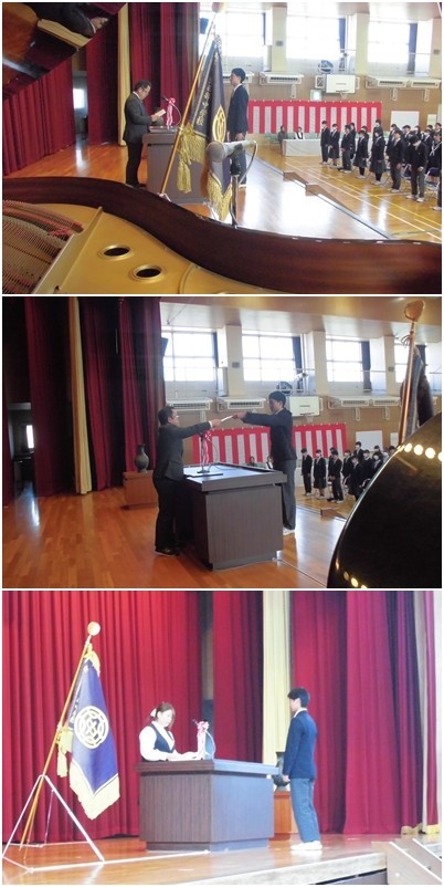 3年生の修了式、同窓会入会式が行われました。
