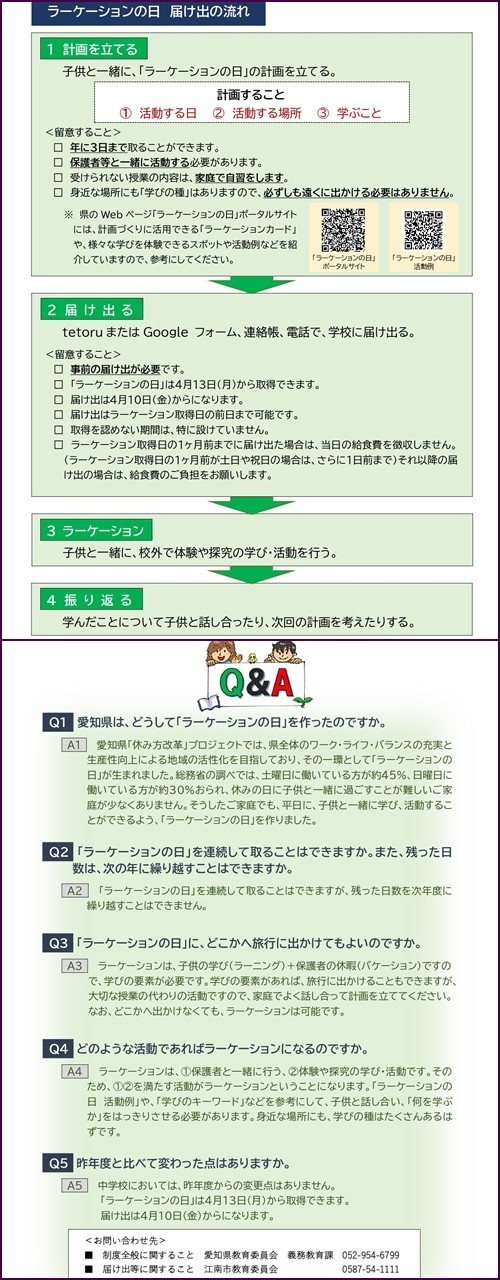 教育委員会より『令和8年度の「ラーケーションの日」保護者用リーフレット』が届きましたので掲載します。