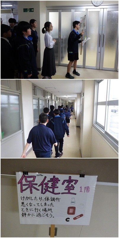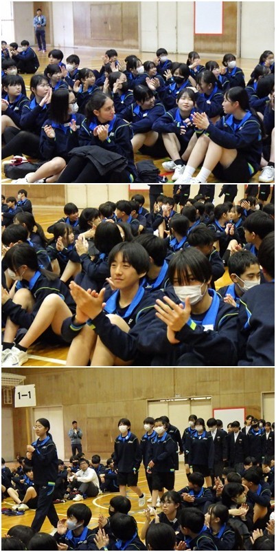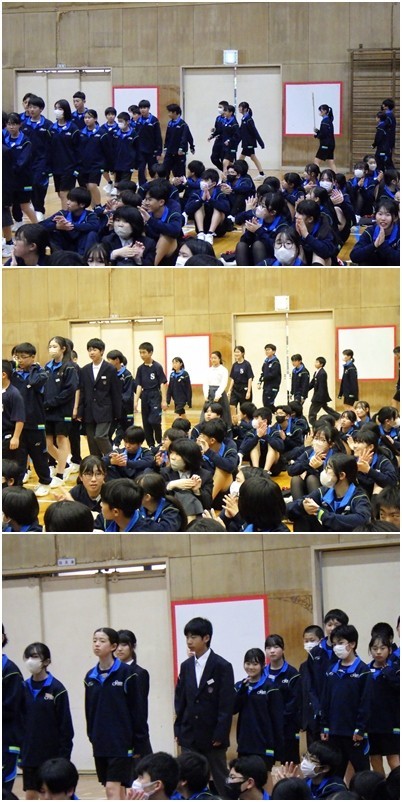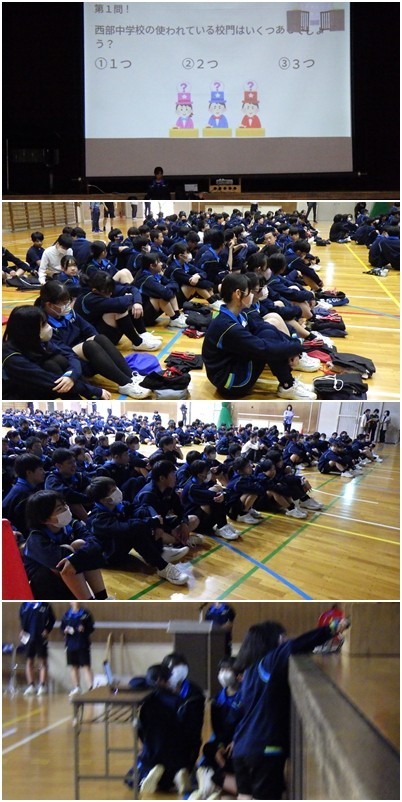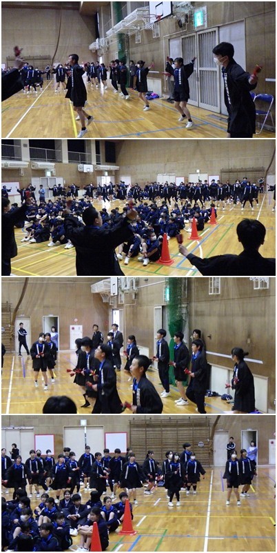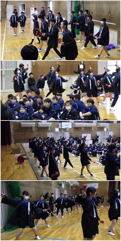 3年生からよさこいソーランの披露をし、生徒会執行部から学校紹介クイズを行いました。
