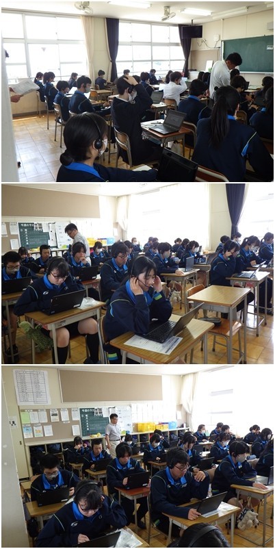 全国学力・学習状況調査『英語』聞くこと調査を行っています。別日で話すこと調査も行います。