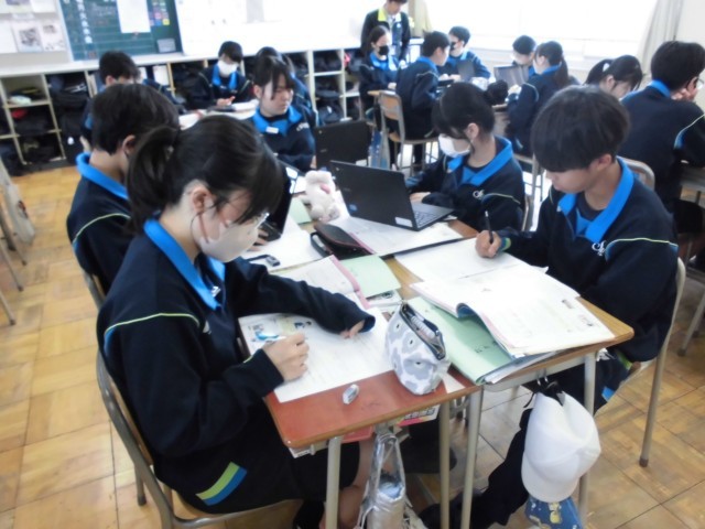 3年生の英語科では、「外国人観光客の答えた内容を読み取ろう」という課題に取り組みました。