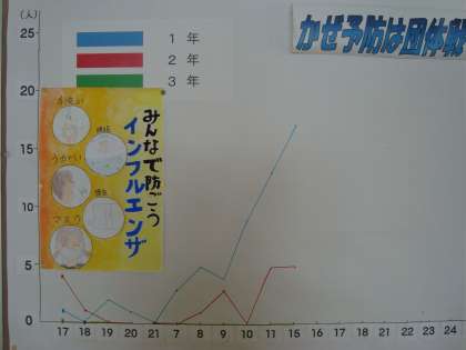 1月15日 かぜ・インフルエンザ情報 公開日 2019/01/15 更新日 2019/01/15 学校生活 連休明け、欠席者が増えてきました。 登校してすぐに、体調不良で早退する生徒もいます。「がんばりたい」という気持ちは分かりますが、この時期、無理は禁物です。登校前の健康観察をしっかりとしましょう。 本日から、かぜ予防キャンペーンが始まりました。「うつさない・広げない」を合い言葉に、活動していきます。 いいね(0)
