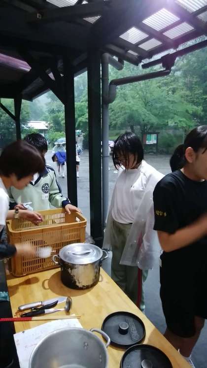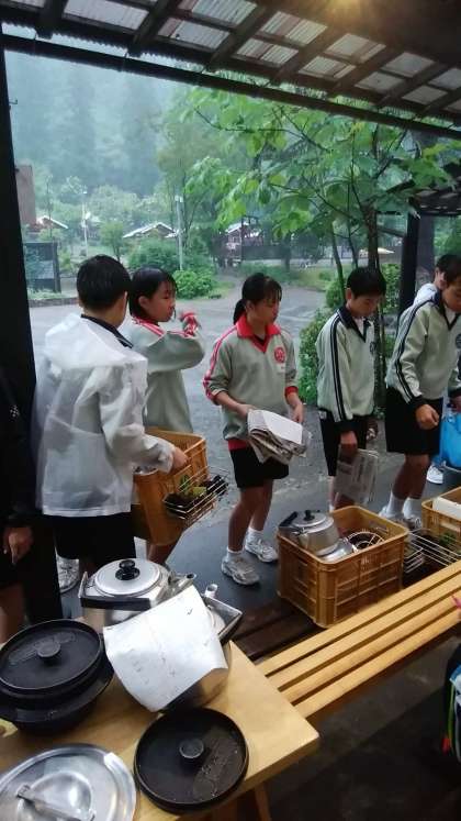 雨の中、チームで協力して片付けを進めています。 すごいぞ!二年生!