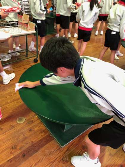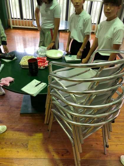 椅子を重ね、食器を手分けして片付けます。手の空いた人が自発的に机を拭いています。さすがです。