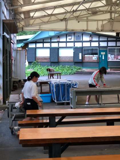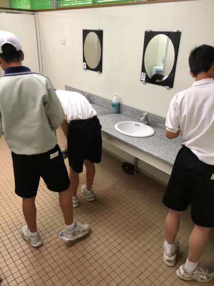 西部中と、場所の形状も汚れ方も違うので、自分たちで考えながら掃除に取り組んでいます。