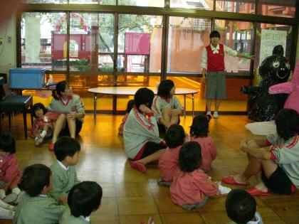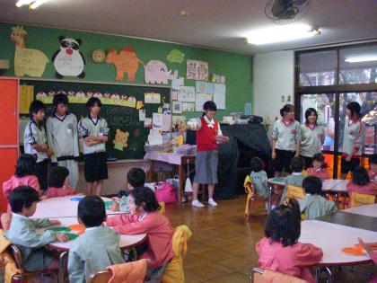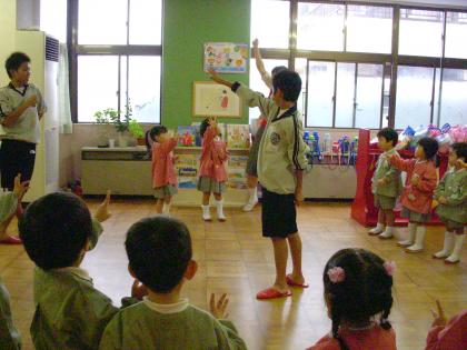 2年生の技術・家庭科の家庭分野では「家族と家庭生活」の学習で幼児の発達について学びます。その中の取り組みとして幼稚園を訪問し幼児とじかにふれあう体験活動をおこなっています。先週から今週にかけて技術・家庭科の時間に実施しています。