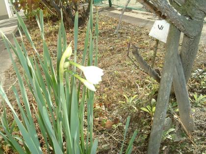 寒さが身にしみるようになり,学校の花壇も模様替えが進んでいます。スイセンの花が早くも咲き始めています。
