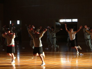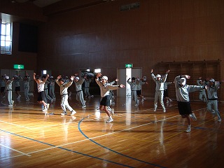 卒業生を送る会に向けてソーランの練習が開始されました。ビデオをスクリーンに映しながらの練習で体育館が暗く写真がうまく撮れませんでした。