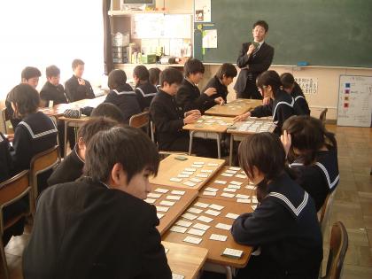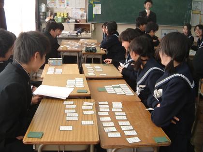 1年生は1月14日(水)の5・6時間目に学年で百人一首大会をおこないます。本日の5時間目は大会に向けて学級で練習をおこないました。冬休みに覚えてきた成果があったでしょうか。