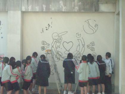 卒業記念壁画2 公開日 2009/02/04 更新日 2009/02/04 3年 本日は私立一般入試第1日目。3年生は朝早く元気よく受験に出かけました。受験がなかった生徒で壁画の作成に取り組みました。 いいね(0)