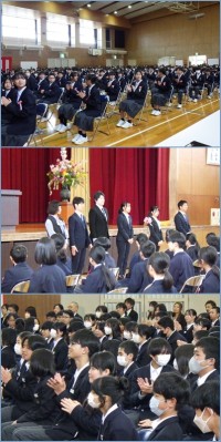 任命式の後、校長先生からは西中クオリティーと西中フロンティアについてお話がありました。また、養護教諭の先生からは新型コロナウイルス感染症への対応についての再確認がありました。