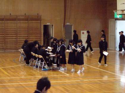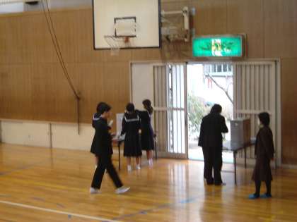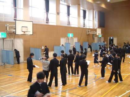 本日の朝7時45分〜8時10分まで体育館で投票がおこなわれました。体育館入り口で受付をして選挙管理委員から投票用紙を受け取り,カーテンで仕切られた記入所で記入をします。体育館出口には選挙管理委員会からお借りした本物の投票箱が置いてあり,そこへ投票をします。月曜日に結果の発表がある予定です。