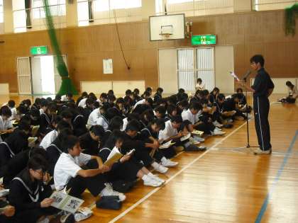 5月14日、学年集会を行い、しおりを使って3日間の行程や諸注意を確認しました。ご家庭でも話題にしてみてください。「江南駅の集合時刻は?」「2日目の見学先、どの駅で降りるの?」「3日目、西部中に何時頃に到着するの?」