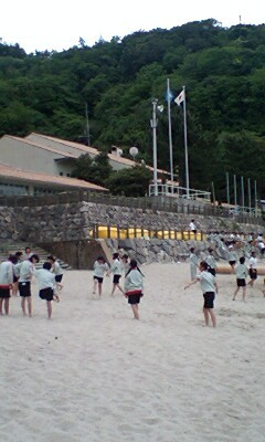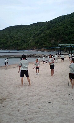 15時30分から大浜海岸で学級別活動をしています。雨は降っていませんが、風が強い中でも、ビーチバレーやビーチフラッグをして学級の親睦を深めています。