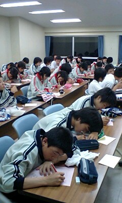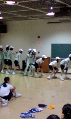 夜は学年レクリエーションを行いました。各部活動の出し物の発表をしました。みんなで盛り上がって楽しい一時を過ごしました。